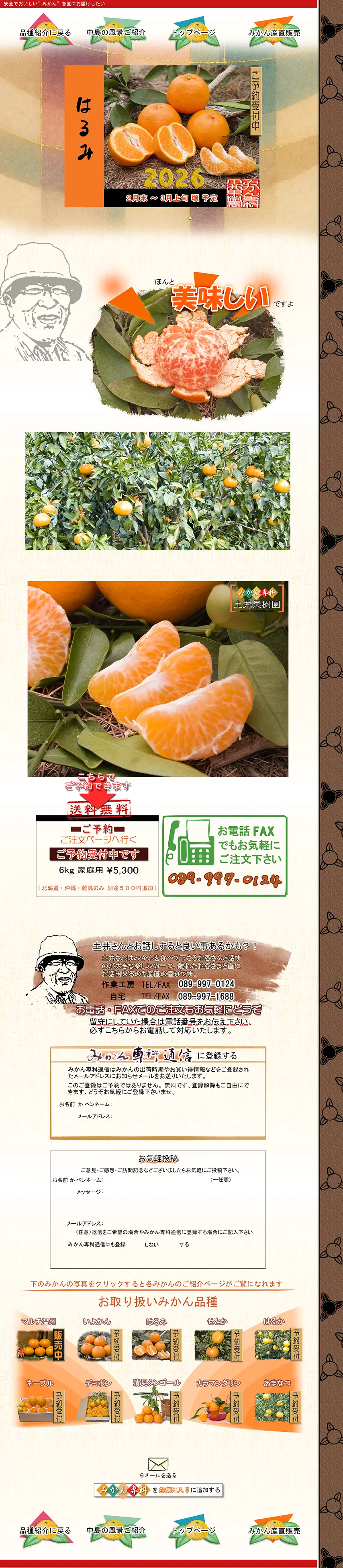 みかん専科 土井果樹園 〒791-4507 愛媛県 松山市 熊田 44-2 FAX・TEL 089-997-0124 園主:土井 進
