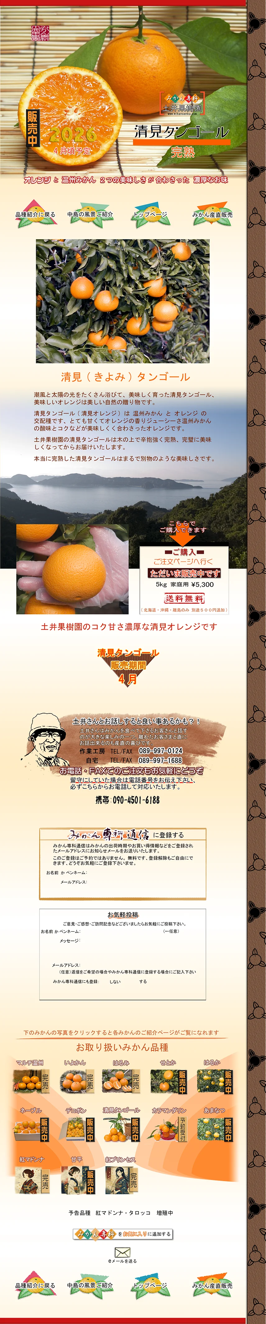 みかん専科 土井果樹園 〒791-4507 愛媛県 松山市 熊田 44-2 FAX・TEL 089-997-0124 園主:土井 進