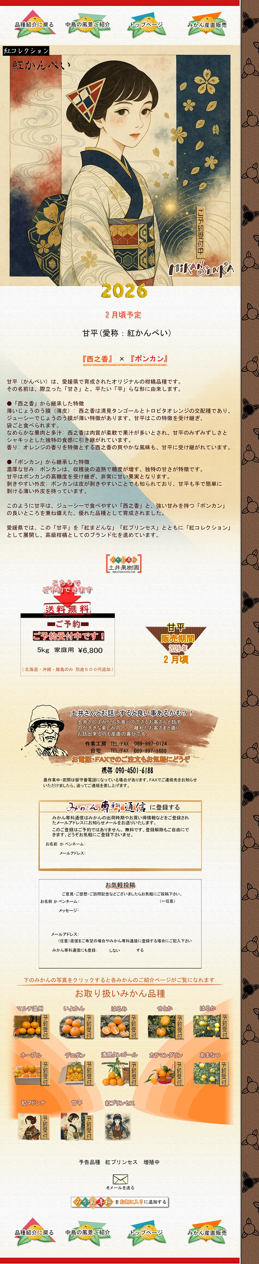 みかん専科 土井果樹園 〒791-4507 愛媛県 松山市 熊田 44-2 FAX・TEL 089-997-0124 園主:土井 進